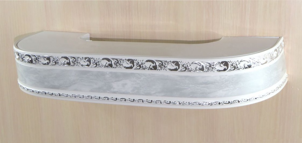 «Галант» с поворотами 7см «Ажур» мрамор с серебром Цвет Галант Ажур мрамор с сербром Размер карниза, м 1,50 Количество полозьев 3