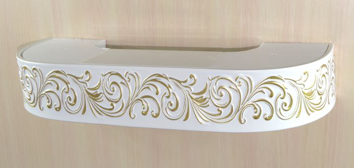 «Галант» с поворотами «Ревьера» 7см белый с золотом (01) Цвет Галант Ривьера белый с золотом Размер карниза, м 3,00 Количество полозьев 3