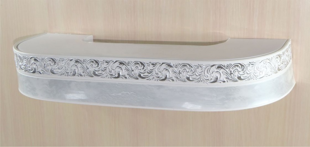 «Галант» с поворотами «Жасмин» 7см мрамор с серебром Цвет Галант Жасмин мрамор с серебром Размер карниза, м 1,50 Количество полозьев 3