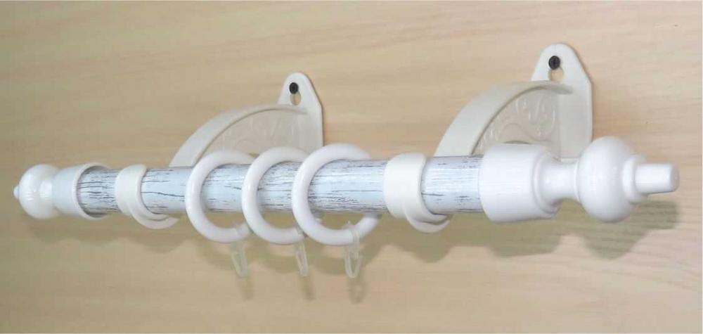 Круглые карнизы Ретро с трубой 28мм отличаются от остальных Круглых карнизов с пластиковой фурнитурой фигурным открытым кронштейном «Ретро», что делает карниз более удобным в использовании. Открытый кронштейн позволяет легко снимать с него (или надевать на него) трубу вместе со шторами.