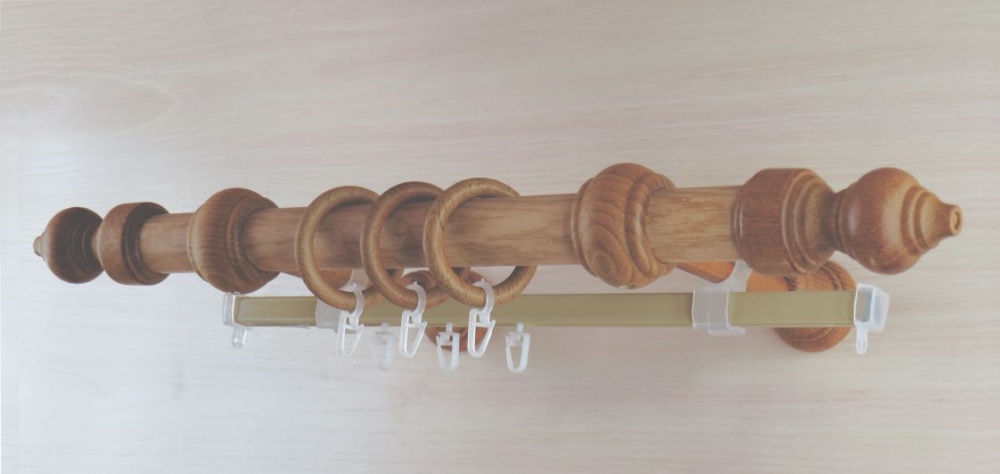 Круглые карнизы Дерево с трубой 28мм отличаются от остальных Круглых карнизов данной группы материалом фурнитуры – ДЕРЕВО, что делает их более экологичными, но при этом и более дорогостоящими.