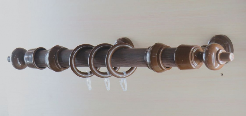 Круглые карнизы с трубой из тонкостенного металла диаметром 28мм и огромной вариацией как расцветок, так и разновидностей фурнитуры — самый популярный сегодня вид настенных карнизов.