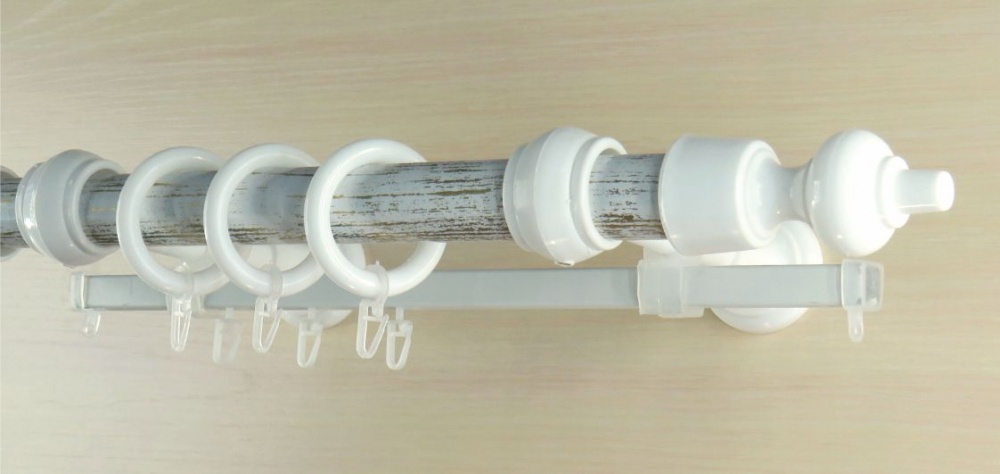 • металлическая труба d28мм с декором или полимерной краской – ствол (в размер карниза);