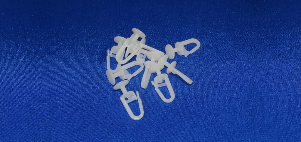 3) Изготавливаются из высококачественного, прочного и износостойкого полупрозрачного белого пластика. Шляпка конусообразная, что позволяет легко двигать шторы по направляющей профиля, при этом крючки не гремят при движении.